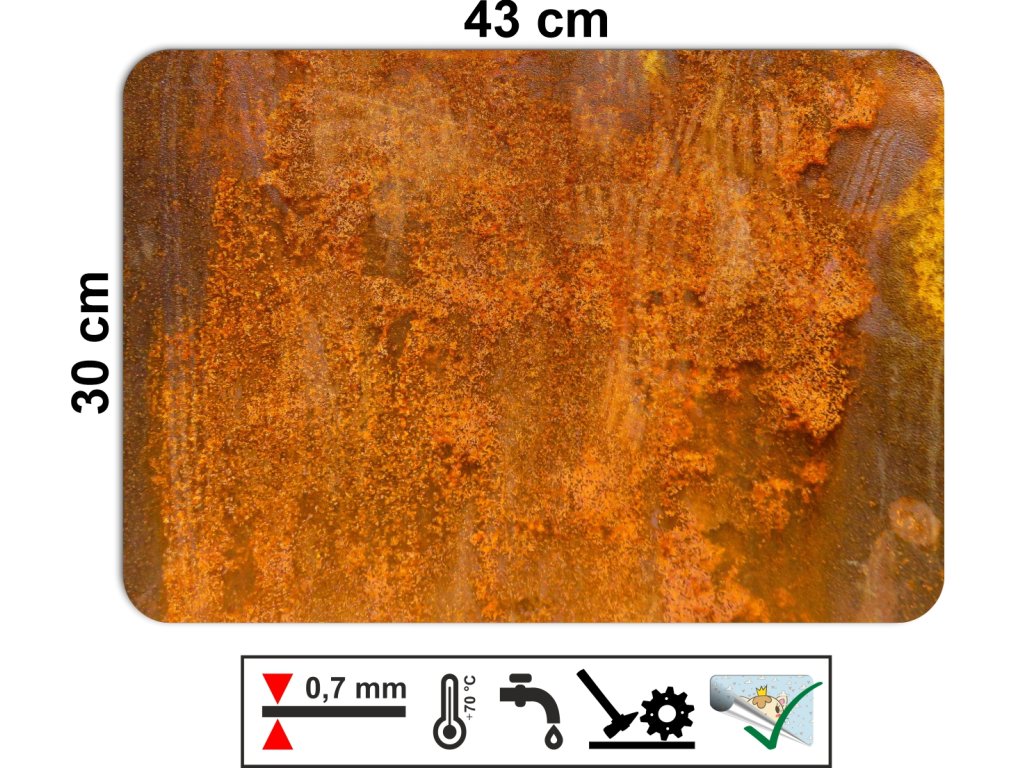 Odolný materiál z PVC s motivem realistické rzi dodá vašemu stolu originální vzhled. Prostírání je hladké, flexibilní a mechanicky odolné, díky čemuž zvládá každodenní používání bez poškození. Lze jej snadno čistit vodou a odolává teplotám až do 70 °C. Tisk ekologickými barvami s certifikací pro dětské hračky zajišťuje nejen bezpečnost, ale i dlouhou životnost motivu. Rozměr 43 x 30 cm je ideální pro běžné stoly v domácnosti i kanceláři. Vyrobeno v České republice.