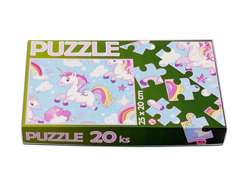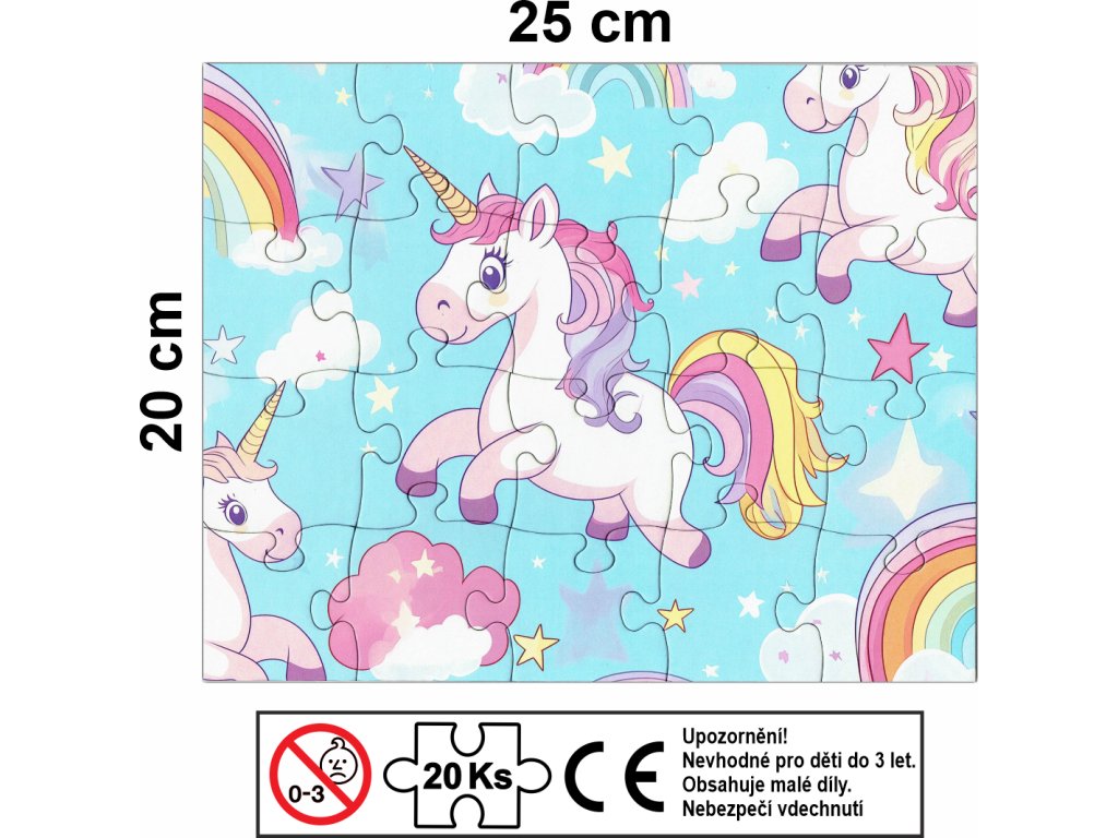 Dětské puzzle Duha a jednorožci – 20 dílků, 25 x 20 cm