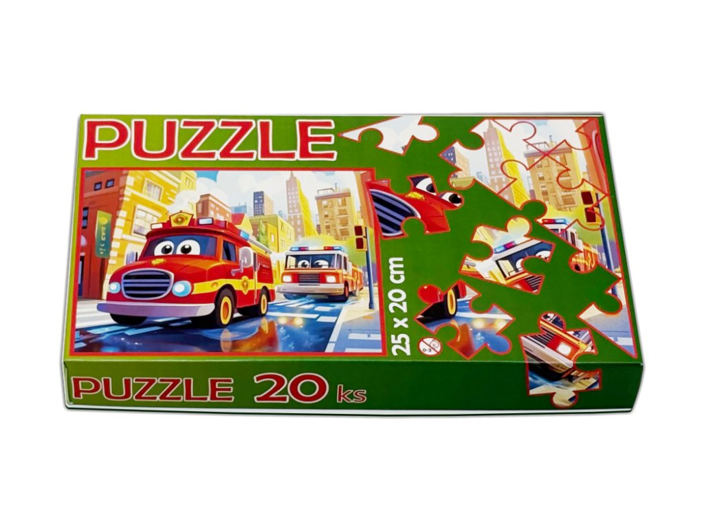 Dětské puzzle Hasičská auta ve městě – 20 dílků, 25 x 20 cm