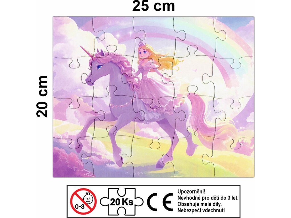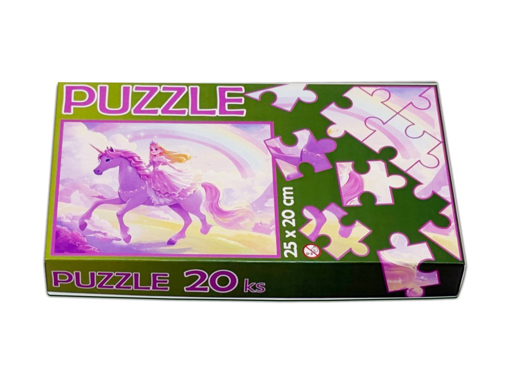 Dětské puzzle Princezna na jednorožci – 20 dílků, 25 x 20 cm