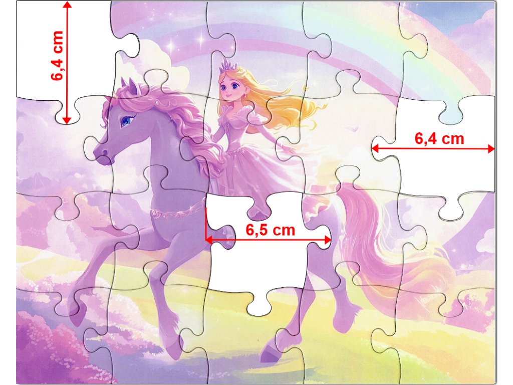 Dětské puzzle s motivem princezny na jednorožci vtáhne děti do kouzelného světa fantazie, barev a pohádkových příběhů. Jemné pastelové tóny a detailní ilustrace podporují soustředění, rozvoj představivosti i první logické uvažování.