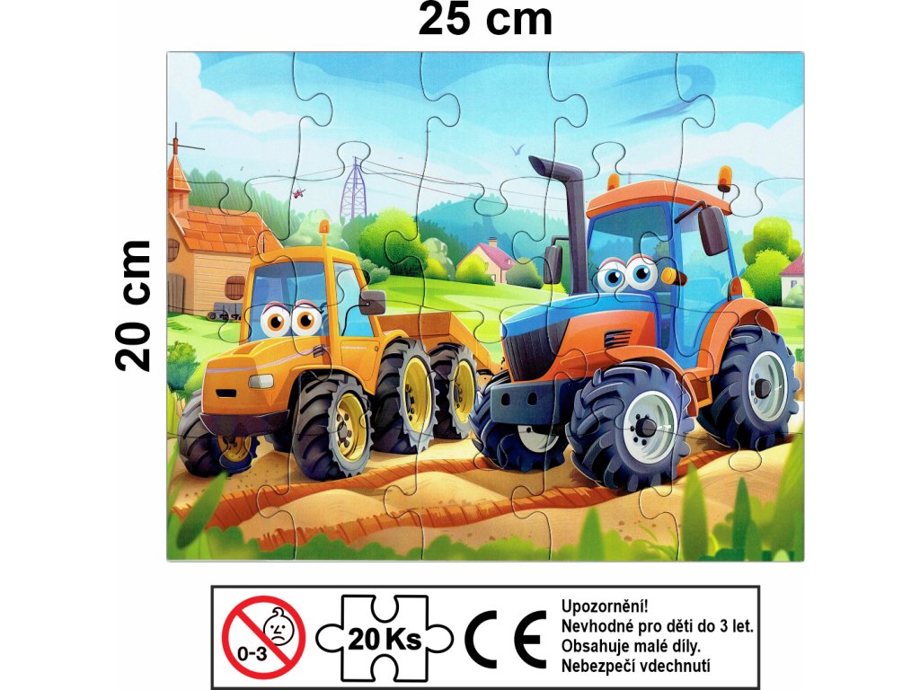 Dětské puzzle Veselé traktory na poli – 20 dílků, 25 x 20 cm