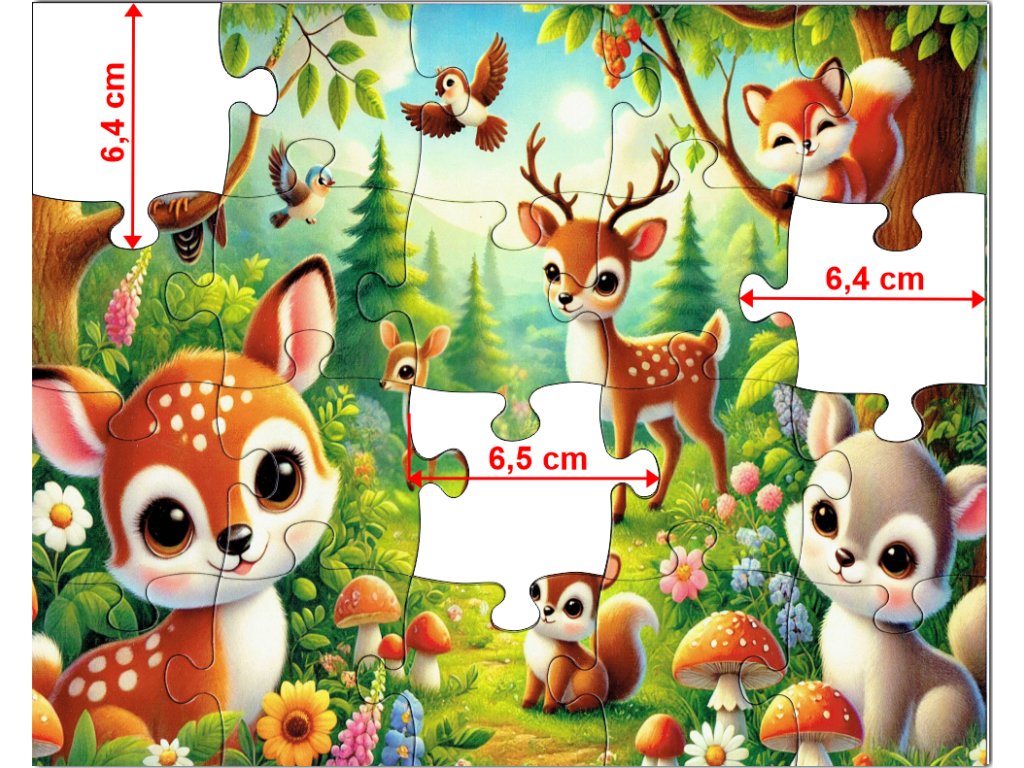 Dětské puzzle s motivem zvířátek v lese zavede děti do kouzelného světa plného srneček, lišek, ptáčků a dalších lesních obyvatel. Jemné barvy, přehledná ilustrace a milé postavičky podporují fantazii a vytvářejí příjemnou atmosféru při skládání.